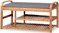 Полка для обуви ST-13  – практичная подставка для обуви польской компании Halmar, состоящая из двух полок. Каркас изготовлен из бамбука. Сиденье изготовленно из ткани.