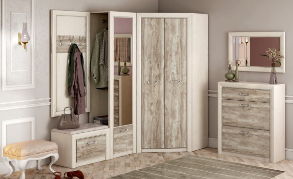 Изделия выглядят эффектно благодаря ярко выраженной, современной древесной текстуре и рамочным фасадам. Коллекция не перегружена деталями и декоративными узорами.